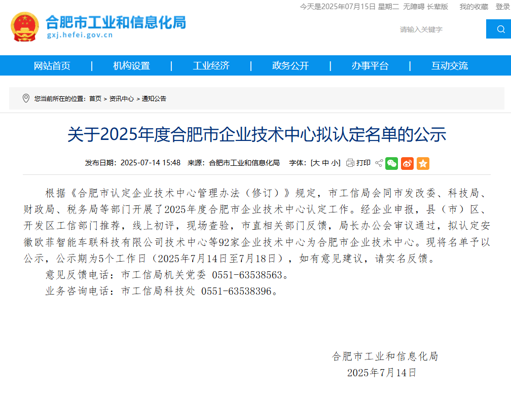 近日,依據(jù)《合肥市認(rèn)定企業(yè)技術(shù)中心管理辦法(修訂)》相關(guān)規(guī)定,合肥市工業(yè)和信息化局聯(lián)合市發(fā)展和改革委員會、科學(xué)技術(shù)局、財政局、稅務(wù)局等部門組織開展了 2025